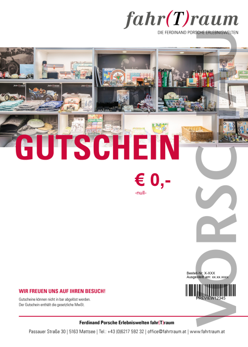Verschenken Sie ein Erlebnis der besonderen Art, sei es eine Ausfahrt in einem unserer Oldtimer, einem Eintritt in unsere Ferdinand Porsche Erlebniswelt oder auch eine Fahrt auf unseren professionellen Fahrsimulatoren.